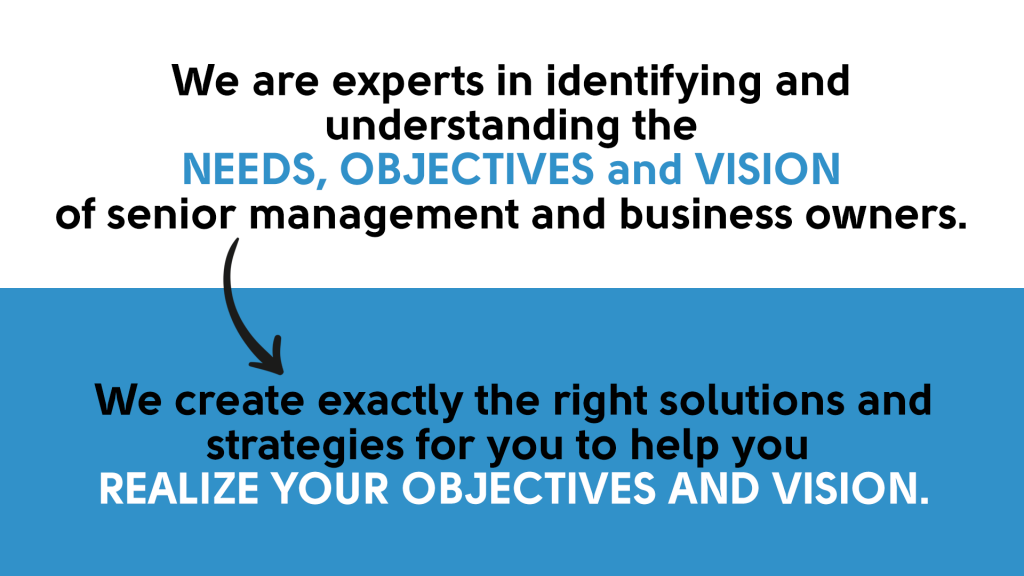 We are experts in understanding and identifying the needs, objectives and visions of senior management and business owners.